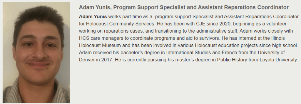 https://www.cje.net/NeverForgetBook Never Heard Never Forget is a collection of roughly 130 survivor testimonies from the former Soviet Union of the Holocaust. A majority of these stories are from Soviet Jews who immigrated to Illinois. In my role I edit all English stories, research historical information, and facilitate the translation and editing process for all survivor testimonies. Local Chicago survivors from the FSU are some of the last Holocaust testimonies to be taken and published. The Holocaust in the former Soviet Union, and its living witnesses and survivors are of vital historical and humanistic importance. The book is published in English and Russian and the second edition will hopefully be published by September of 2022. It is a privilege to work with the last generation of Holocaust survivors to publish their stories.